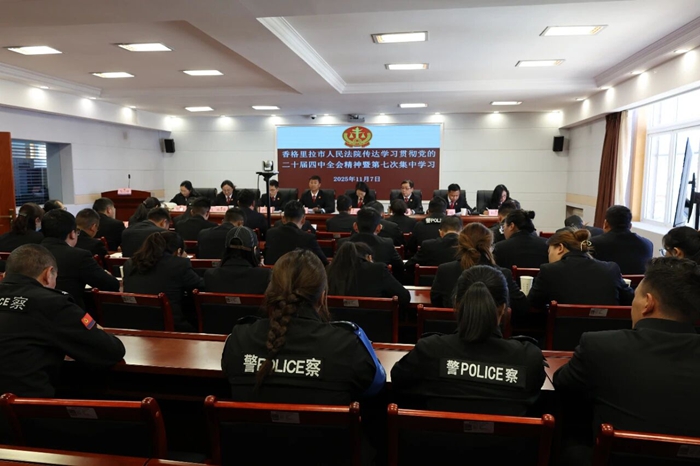 11月7日,迪庆州香格里拉市人民法院召开全院大会,传达学习贯彻党的二十届四中全会精神。