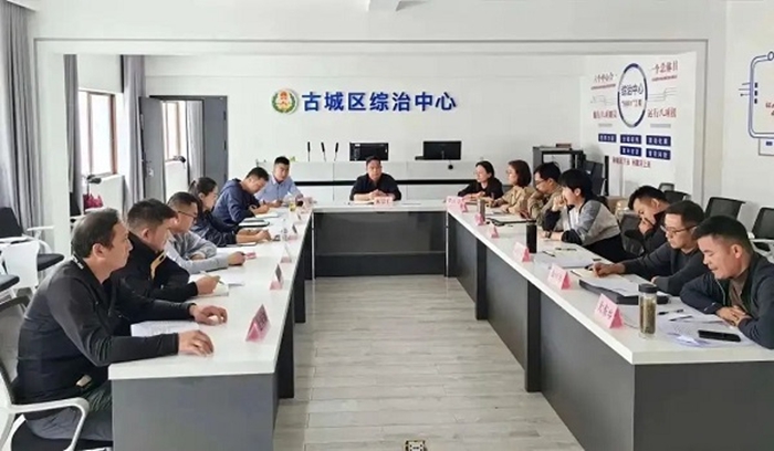 架构规范化,三级联动构建全域治理格局,“六中心合一”打破部门壁垒。在综治中心规范化建设中,古城区构建起“区级实战组织、街镇实战处置、村居前哨阵地”三级架构,实现治理力量的纵向贯通与横向协同。在区级层面,建立高位统筹机制。由区委政法委分管维稳副书记担任综治中心主任,公、检、法、司、信等多部门分管领导担任副主任,形成决策、执行、保障“三位一体”的高效机制;在街镇层面,强化实战处置能力。全面落实“乡街吹哨、部门报到”机制,对辖区内中低风险问题快速响应、即时处置,真正实现“小事不出街镇”;在村居层面,织密基层治理网格。由村(社区)“两委”班子成员担任网格长,在划分网格的基础上进一步细化出微网格,配备网格长、专职网格员和微网格信息员,将治理触角延伸到基层末梢。