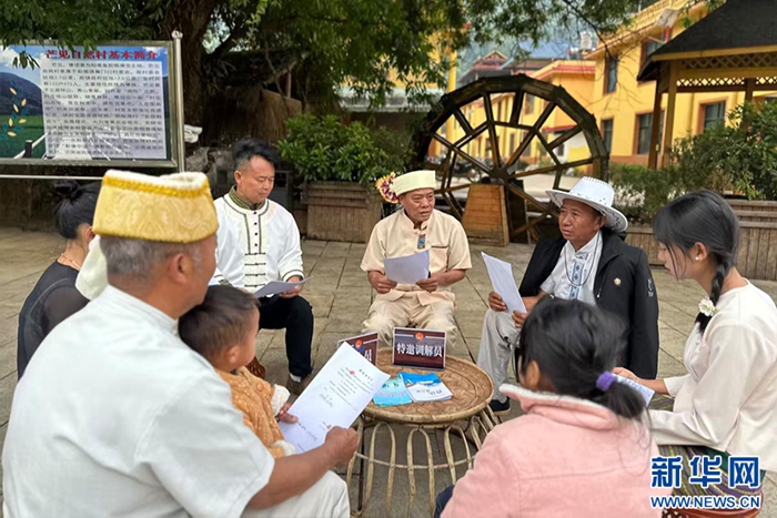 永德县德党镇成立“银发服务队”,吸纳17个“银发法官”为居民提供法律服务、开展普法活动。2019年退休的孟晋竹曾在永德县人民法院诉前调解室工作,2021年加入“银发服务队”。“社区里家庭纠纷比较多,通过普法和调解可以消除很多潜在问题。”孟晋竹说。