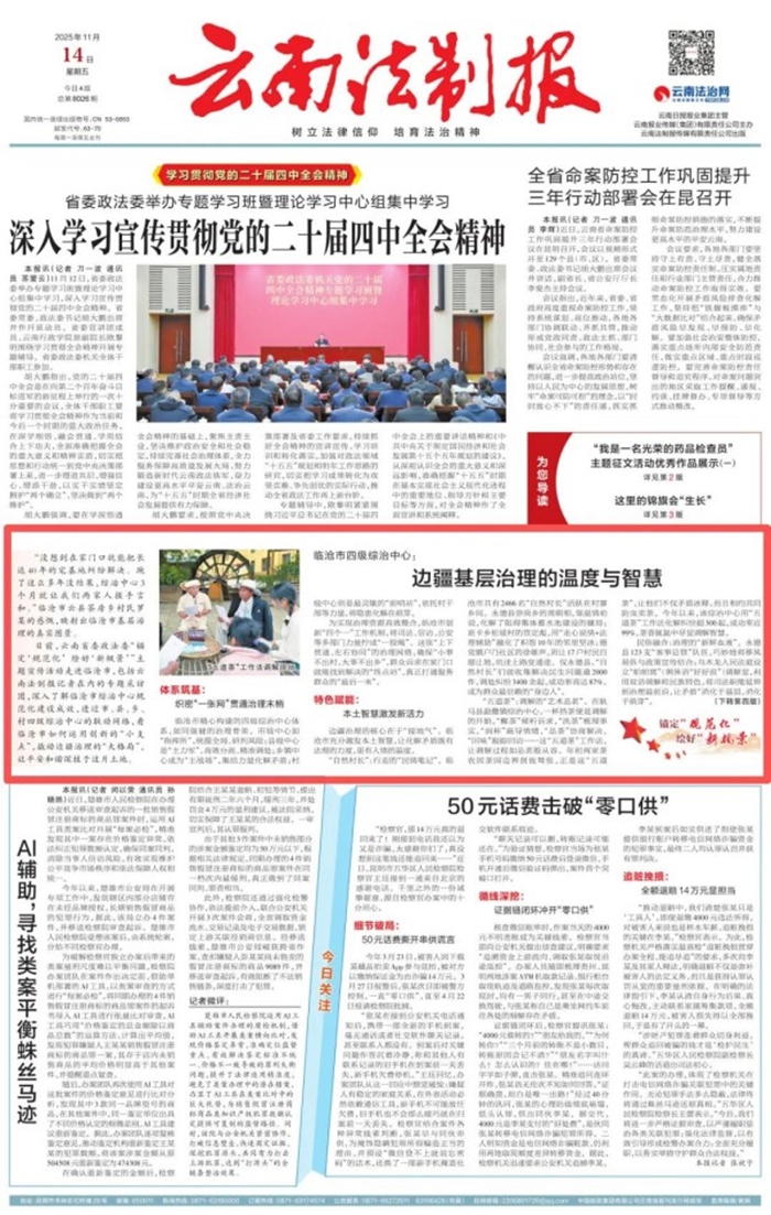 为实现治理资源高效整合,临沧市创新“四个一”工作机制,将司法、信访、公安等多部门力量拧成“一股绳”。这张“上下贯通、左右协同”的治理网络,确保“小事不出村、大事不出乡”,群众诉求在家门口就能找到解决的“终点站”,真正打通服务群众的“最后一米”。