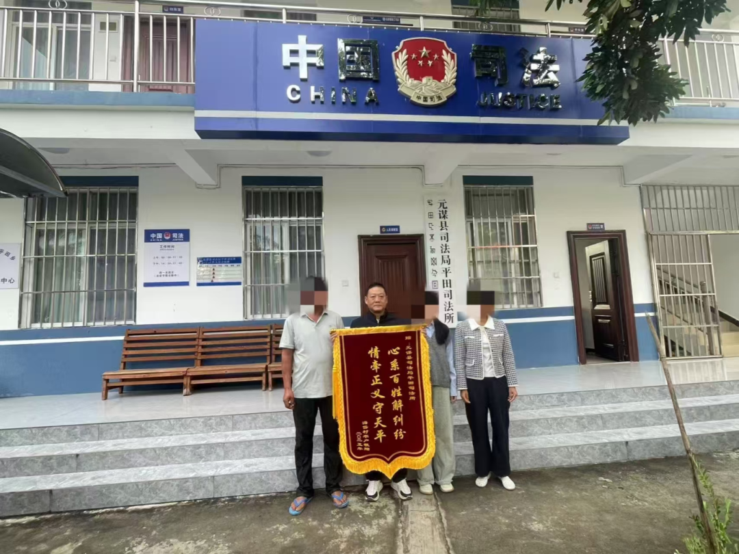 “真是太感谢平田司法所的同志们了!为了我们的事跑前跑后、加班加点,你们真是农民的贴心人!”元谋县平田乡海岱村的农户代表将写有“心系百姓解纠纷,情牵正义守天平”的锦旗送到元谋县司法局平田司法所所长手中。