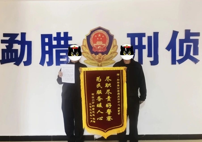 2月2日,勐腊县公安局刑侦大队反诈专班收到了一份特殊的包裹——一面印有“尽职尽责好警察 为民服务暖人心”的锦旗和一封深情感谢信。这份包裹从3800公里外寄来,背后是一段暖心的反诈故事。