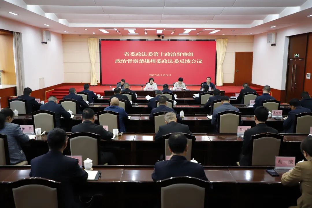 3月3日,省委政法委第十政治督察组政治督察楚雄州委政法委反馈会议召开。省委政法委委员、政治部主任毛亚芳反馈政治督察情况。