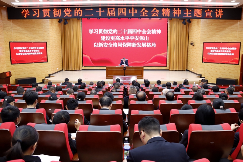 为深入学习贯彻党的二十届四中全会精神,建设更高水平平安保山,以新安全格局保障新发展格局,11月26日,保山市委政法委举行党的二十届四中全会精神专题宣讲会。