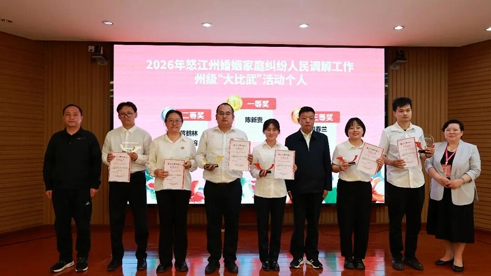 近日,由怒江州妇联与怒江州司法局联合主办的2026年怒江州婚姻家庭纠纷人民调解工作州级“大比武”活动在泸水市圆满落幕。