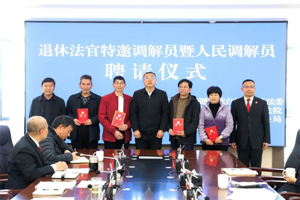 为迅速落实全省聘请退休法官从事调解工作推进会工作要求,坚持和发展新时代“枫桥经验”,完善矛盾纠纷多元化解机制,近日,昆明市寻甸县人民法院举行“银发先锋调解工作室”成立暨特邀调解员聘任仪式。