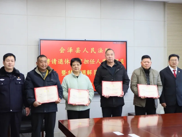 1月15日,会泽县人民法院与县司法局联合举行人民调解员及特聘调解员聘任仪式,4名调解经验丰富、热心群众工作的退休法官受聘担任人民调解员、特邀调解员。