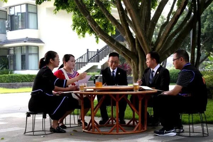 架起司法需求“连心桥”,创新特色调解促交融。立足各民族实际需要,常态化培养“双语法官”,适时推行“双语”审判模式,搭建起法官与各族群众沟通的桥梁。在民族聚居区建成乌木龙、勐库、勐撒等5个特色鲜明的人民法庭,挂牌成立云南法院首个“鲍卫忠群众工作法”调解工作室,先后设立彝族“帕帕窝”(意为“好好说”)、佤族“共融”“乖唠勐”(意为“好好说话,以和为贵”)等12个民族特色调解室,让多元司法服务延伸到千家万户、走进寻常百姓家,构建起各族群众家门口的司法“服务链”,推动各族群众和谐共处、融合发展。