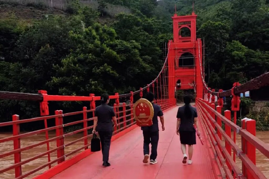 数字化手段更让司法服务跨越山水阻隔。朋普法庭大力推广“云上法庭”、在线调解等智慧平台,打造“一网通办” 诉讼服务模式,边远山区群众通过综合服务站即可视频连线法官、在线参与调解,实现“掌上开庭”。2025年,线上开庭、调解案件161件,电子送达3984人次,用“数据跑”替代“群众跑”,让公平正义触手可及。