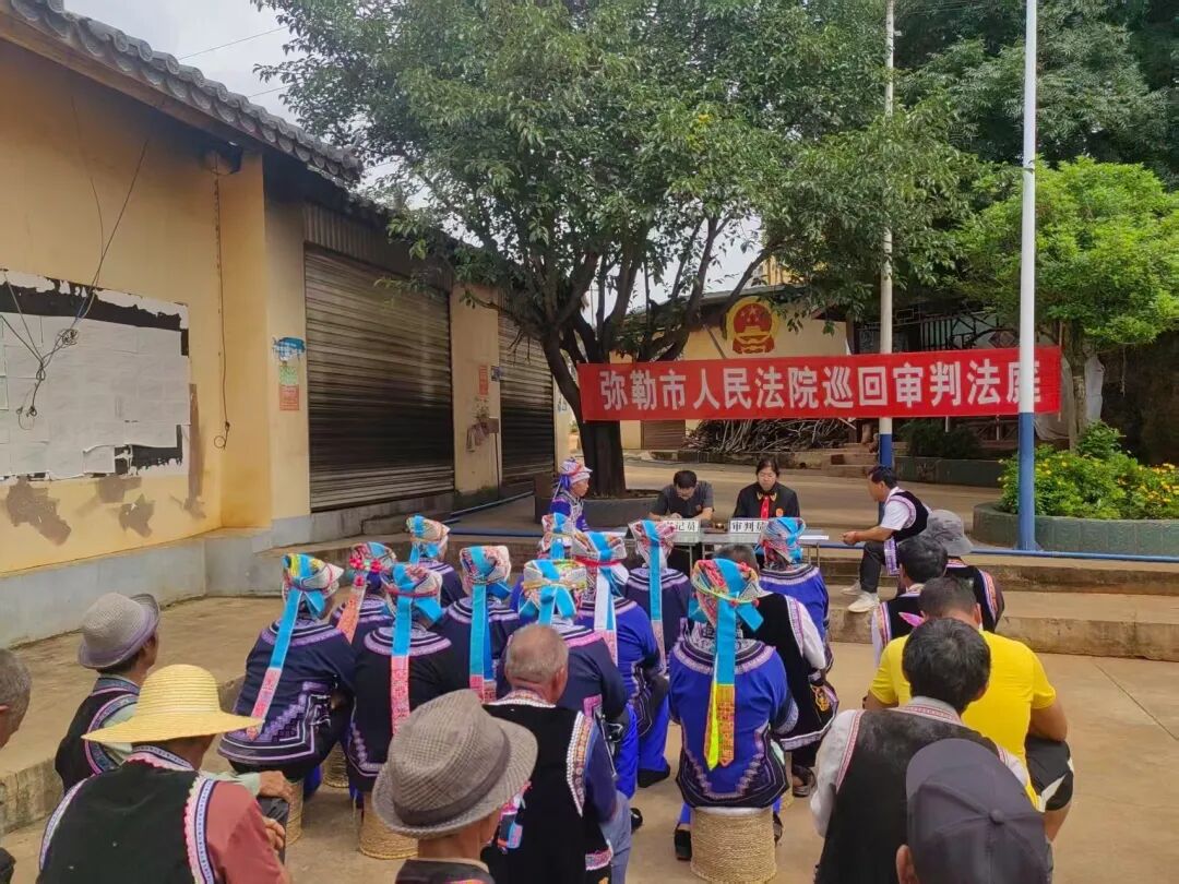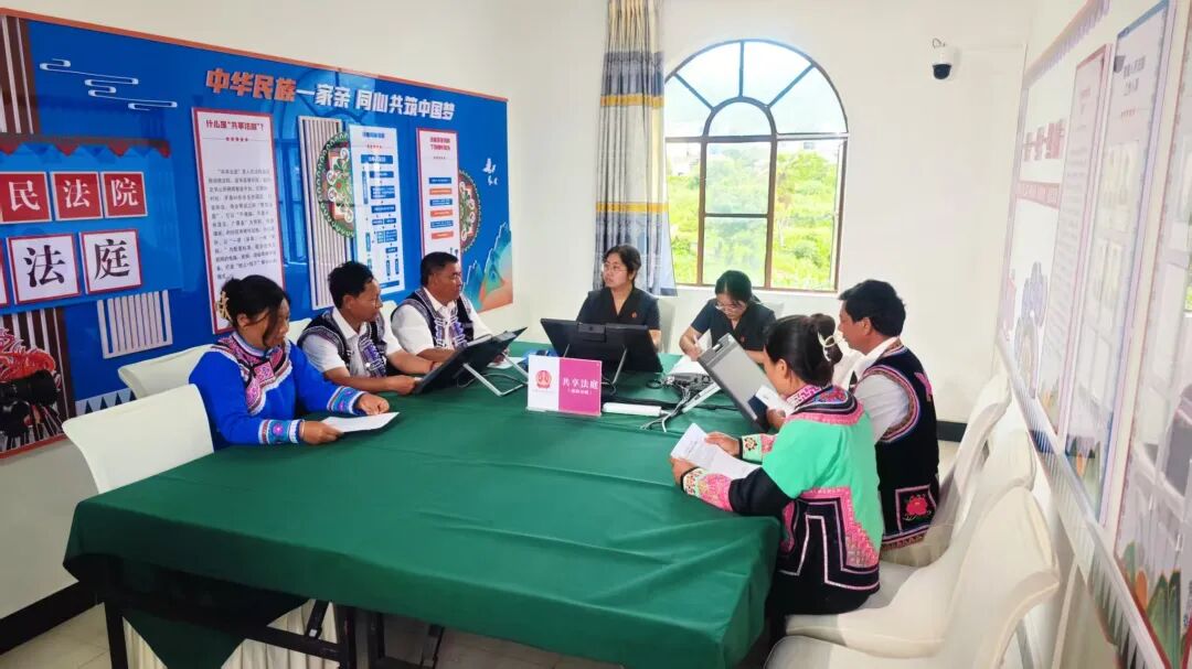 “法庭开到晒场上,既解纷又学法!”农忙时节,朋普镇某村的晒场上,一场特殊的“午间法庭”正在进行。为解决群众农忙没时间参与诉讼的难题,朋普法庭传承“马背法庭”精神,将庭审“搬”到村寨院落、田间地头,开设“午间法庭”“夜间法庭”,开展巡回审判。法官携卷下乡,当场调处纠纷的同时,以案例为教材普及法律知识。2025年,巡回开庭6次,当场化解纠纷30余起,巡回审判率达100%,让每一次司法实践都成为一堂生动的法治公开课,以司法温情拉近民族情感,以法治力量筑牢民族团结根基。