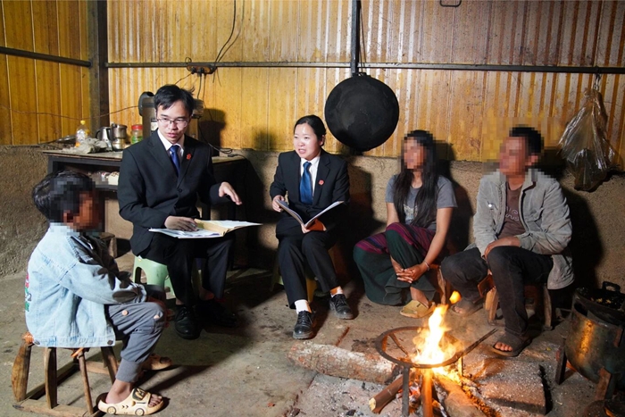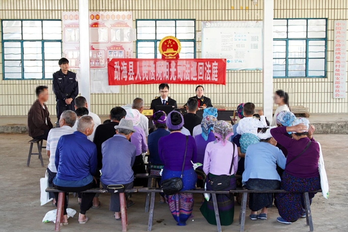 庭审结束后,勐遮法庭工作人员进入村寨开展普法活动