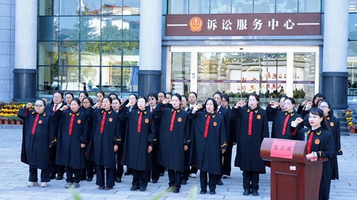 近期,丽江市、县两级法院开展以“党徽耀天平·巾帼护法魂”为主题的“六个一”主题实践活动。法院女性干警们走出法庭,深入山水之间、群众之中,在党建、法治、生态与民族交融的壮阔画卷上,奋力书写挺膺担当的崭新篇章。