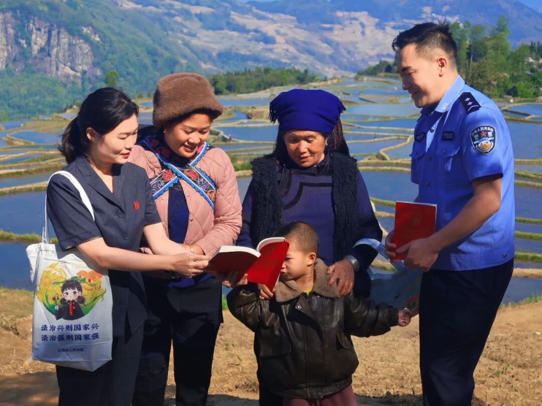 宣讲中,干警结合元阳县法院近年来审理的非法采伐国家重点保护植物、梯田相邻用水纠纷、破坏农耕设施等典型案例,重点解读了法典中关于耕地保护、水源保护、相邻权保护的相关规定,更围绕生态保护与文化遗产保护相融合的理念,讲解梯田生态保护与哈尼农耕文化传承的密切关联,向村民们强调,哈尼梯田“三遗产”的价值,不仅关乎当下的生存家园,更关乎子孙后代的文化根脉与生态福祉,守护梯田,就是守护民族的未来,就是守护这份承载千年智慧的“活态遗产”。