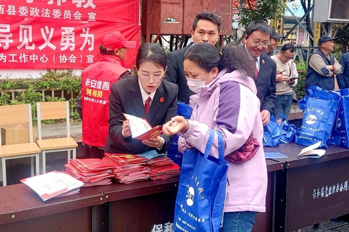 维西县人民法院与县委政法委、县公安局、县检察院等政法各部门,共同在念萨街广场集中开展国家安全主题普法宣传活动。活动现场,各部门立足职能“摆摊”设点,通过悬挂横幅、发放资料、以案释法等形式,吸引了大量过往群众驻足参与,营造了“国家安全、人人有责”的浓厚氛围。