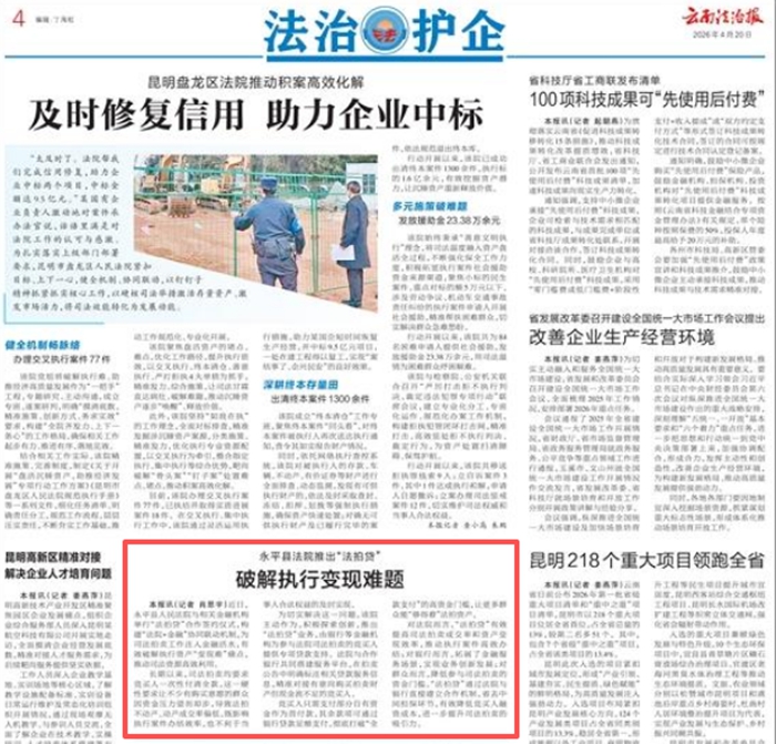近日,大理州永平县人民法院与相关金融机构举行“法拍贷”合作签约仪式,构建“法院+金融”协同联动机制,为司法拍卖工作注入金融“活水”,有效破解执行资产“变现难”痛点,推动司法资源高效利用。