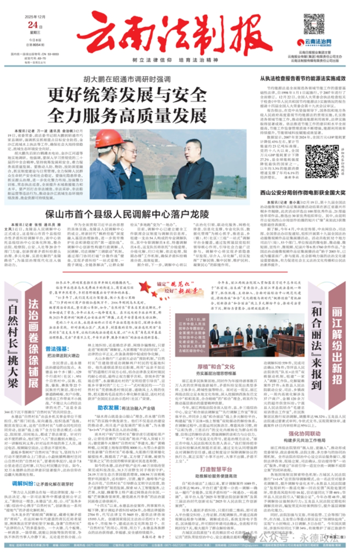 全民普法,是永德法治建设的出发点。永德县10个乡镇、129个行政村(社区)、951个自然村中,汉族、佤族、傣族、彝族等22个民族世代聚居,部分村寨道路崎岖、农户分散,给普法工作带来不小挑战。“不能让大山挡住法律的光芒。”这是全县344名下沉干部兼任“自然村长”的共同信念。
