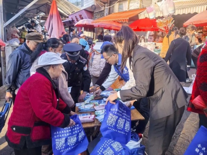 在山街熙攘人群中,普法干部的声音格外清晰。发放给群众的“法治大礼包”里,不仅有宣传折页,还有印着法律知识的环保袋、围裙等实用物品。