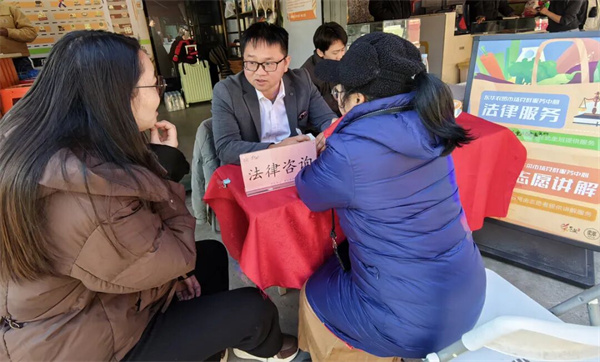 律师(中)在给市民进行法律讲解