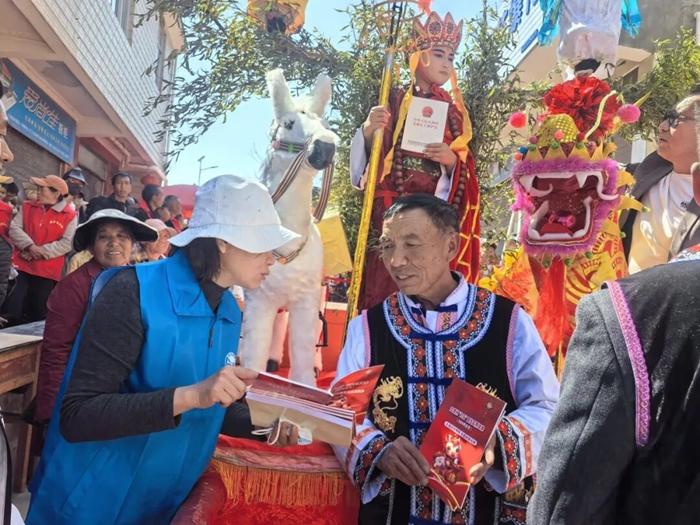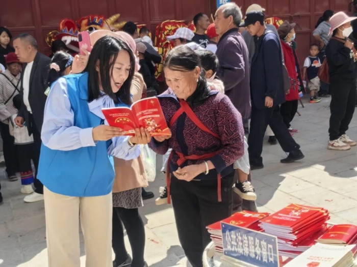 “阿叔,接到陌生电话让转账,可千万要核实清楚!”“大姐,过年放烟花爆竹,要留意安全规定,别让喜事添堵。”普法志愿者穿梭于观演人群与巡游队伍之间,用彝汉“双语”、乡音土语开展“流动式”普法,聚焦防范电信网络诈骗、烟花爆竹安全燃放、消费者权益保护、老年人权益保障、邻里纠纷化解、宅基地与劳务用工维权等春节期间高发法律问题,通过发放宣传资料、现场以案释法、一对一答疑解惑,把法律条文转化为群众听得懂、记得住、用得上的身边常识,将新春祝福与法治理念融为一体,送上既有年味又有法味的“平安福”与“法治礼”。