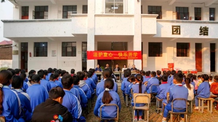 近日,临沧市耿马县孟定镇河西社区完全小学的操场上格外热闹。一场别开生面的“开学法治第一课”开始了,临沧市中级人民法院派驻河西社区的三名“自然村长”走进校园,与全校师生齐聚国旗下,用孩子们听得懂、记得住的语言,带来了一堂既生动有趣又干货满满的普法安全课。