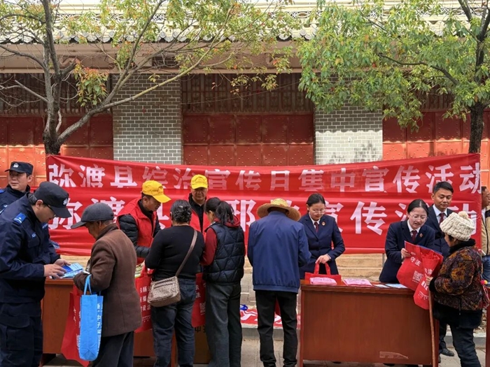 为切实提升基层群众法治素养与安全防范能力,近日,大理州弥渡县委政法委统筹县法学会、县公安局、县人民检察院等单位,开展综治宣传月集中普法宣传活动,把法治服务送到群众家门口。