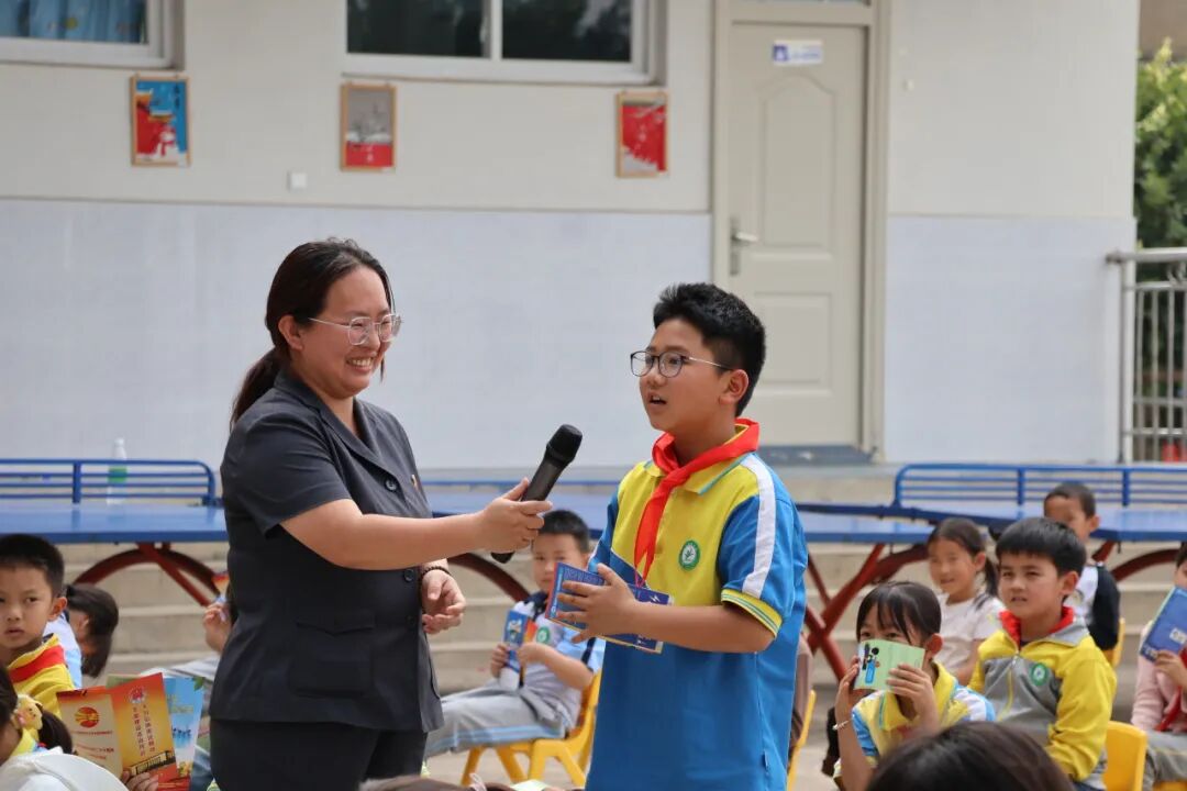 同学们纷纷高举小手、踊跃抢答,稚嫩的嗓音清脆响亮,整个操场洋溢着浓厚的学法氛围。