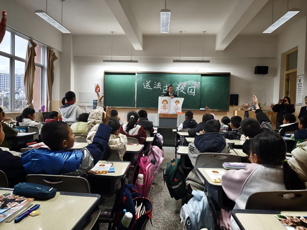 一册册图文并茂的未成年人自我保护宣传册、一本本浅显易懂的法律知识读本、一件件印有法治标语的小礼品……检察官们将“法治礼包”送到孩子们手中,让法律知识看得见、带得走、用得上。