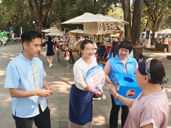 景洪街道组织平安法治办、允景洪司法所、允景洪法律服务所、花卉园社区及辖区派出所,召集普法宣传员与“法律明白人”集体“出摊”。他们化身“法治摊主”,将国家安全、反诈防骗、边境管理、消防安全等知识打包成沉甸甸的“法治大礼包”,借节日热闹氛围送到群众手心里、心坎上。