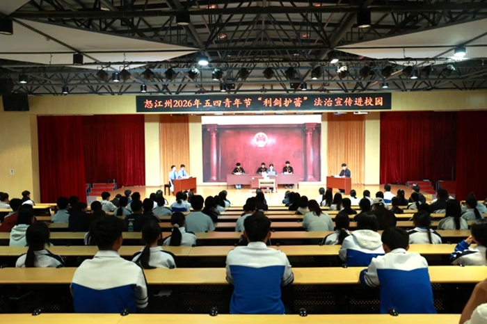 4月28日,怒江州委全面依法治州委员会守法普法协调小组办公室联合州司法局、州中级人民法院等十余家普法责任单位主办的怒江州2026年五四青年节“利剑护蕾”普法宣传教育活动在怒江职业技术学院举行。