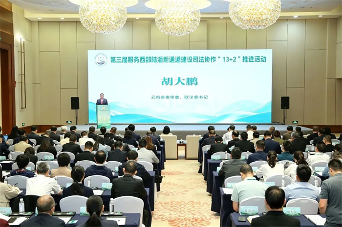 胡大鹏在致辞中表示,建设西部陆海新通道,是以习近平同志为核心的党中央作出的重大战略部署。云南省委高度重视,坚持以面向南亚东南亚辐射中心建设为牵引,积极融入西部陆海新通道建设。希望以此次活动为契机,凝聚共识、深化交流,聚焦主责护发展,完善规则促协同,建强队伍聚合力,共同谋划好“十五五”时期法治建设任务。