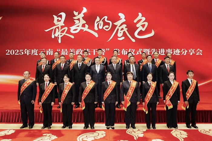 发布仪式上,省委宣传部、省委政法委正式授予怒江州泸水市委政法委副书记和永锋,西双版纳州勐海县人民法院打洛人民法庭副庭长佐灯,昆明市官渡区人民法院磨憨人民法庭副庭长易君宇,昆明市五华区人民检察院党组成员、副检察长吴云峰,临沧市临翔区人民检察院检委会专职委员李邦红,曲靖市麒麟公安分局白石江派出所社区中队长张涛,昭通市威信县公安局水田派出所所长李云,保山市公安局隆阳分局刑侦大队副大队长李镔镔,曲靖市会泽县司法局古城司法所所长刘志安,云南省第二监狱教育改造科科长闫力峰等10名同志荣获2025年度“最美政法干警”称号。