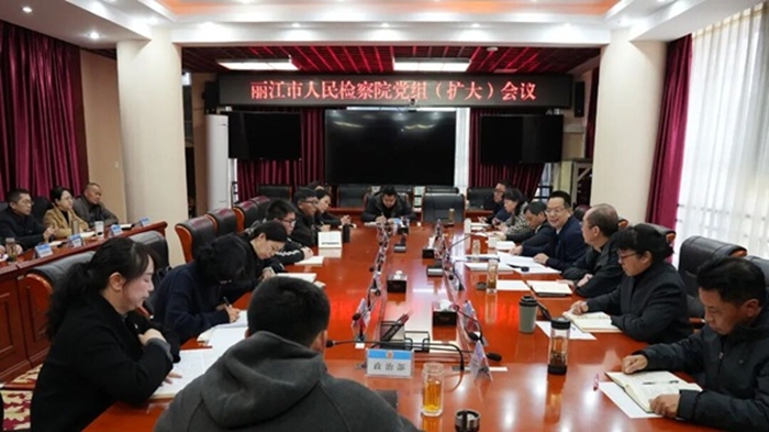 近日,丽江市人民检察院召开党组(扩大)会议,专题传达学习省、市两会精神,研究贯彻落实具体举措。市院领导班子成员、检委会专职委员及各内设机构负责人参加会议。