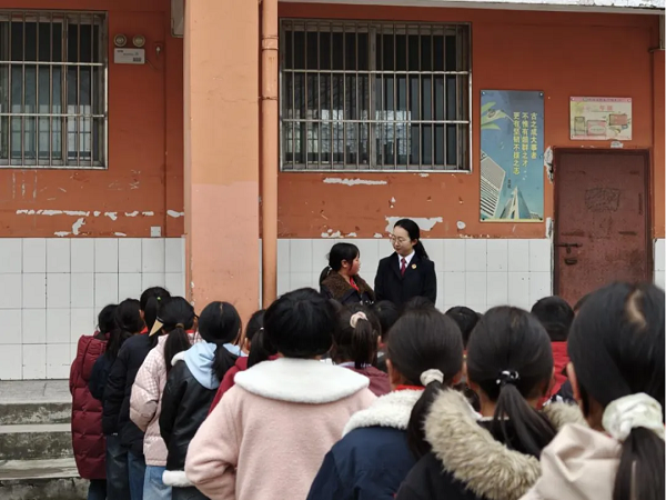精准普法,让法治课“干货满满”。为小学、初中不同年龄段学生分别设置课程,并根据留守儿童占比较高的情况,制定自护教育与犯罪预防并重的授课内容。普法过程中,结合学生的认知特点和身心发展规律,通过互动问答、情景模拟的形式讲解新修订的《中华人民共和国治安管理处罚法》以及网络安全、预防校园欺凌、防范性侵害等知识,将枯燥的法条变为有趣的“故事”,在孩子们心中播下法治的种子。