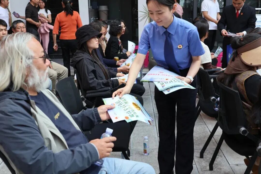 庭审结束后,建水县检察院联合建水县人民法院在现场设立了“守护千年紫陶”专题法治宣传点,向旁听人员发放了宣传手册,并结合紫陶产业特点,就如何规范使用商标、如何防范侵权风险、遭遇侵权如何维权等问题释疑解惑。