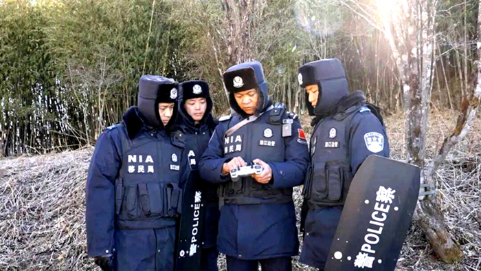 民警和建武操控无人机,对徒步难以抵达的地面盲区开展空中巡查。无人机实时传回山坳内的现场情况,大幅提升了边境巡护效率。