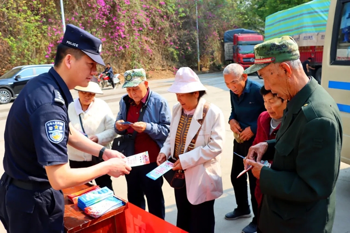 “陌生人让帮忙带东西过检查站,不能带!”一位傣族大娘重复刚学到的知识。民警还向过往群众分发印有举报电话“12339”的环保袋和普法图册,把今年全民国家安全教育日“统筹发展和安全 护航‘十五五’新征程”的主题,融入每一次查验、每一句讲解,让安全理念随春风传递。