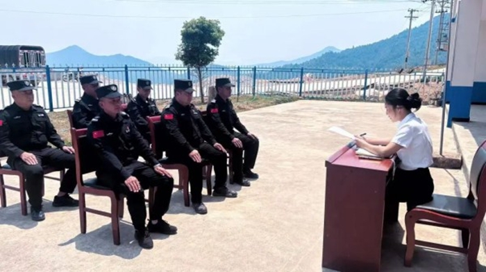 滇西南的春日清晨,在临沧市镇康县勐堆乡大牛圈联防所执勤空地上,简易木凳整齐摆放、课堂就地开课,一场接地气、有温度、贴实战的专题党课在戍边前沿阵地如期开讲。