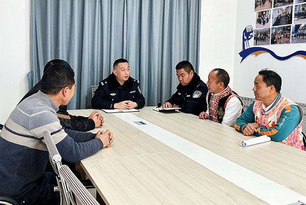 在曲靖市富源县墨红镇九河村,墨红派出所那色谱调解九河工作室里,一场历时数年的堂兄弟恩怨刚刚消弭。因水管损坏,两家竟三年互不搭理,走访中,社区民警了解到这一情况,于是联合村干部、驻村辅警、本地调解员三次调解,最终让双方握手言和。