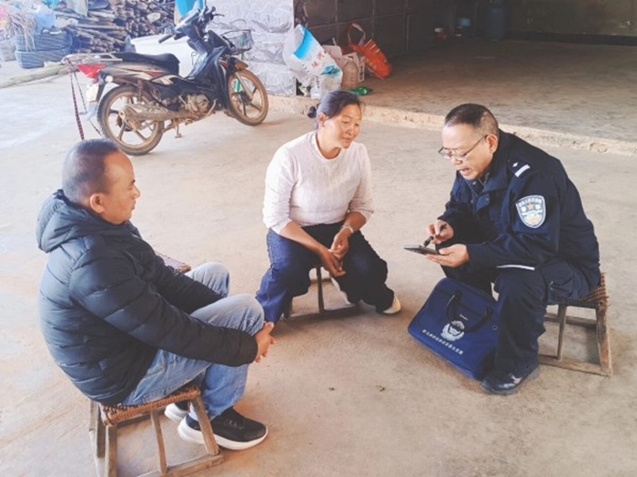 耿马派出所社区民警聚焦“村(社区)、组、户(企业)”三访要素,结合不同群体法律需求,将法律知识送到群众家门口。在乡村田间地头,民警围绕宅基地纠纷、邻里口角等高频问题,通过以案释法、现场答疑等形式,用通俗易懂的方言开展普法宣传,引导农户依法维护自身合法权益。在城镇社区,通过举办社区讲座、张贴警示海报、发放宣传资料等方式,重点普及防诈骗、防火灾、道路交通安全等知识,提升居民自我防范意识。在商户、企业及特殊群体家庭,采取主动上门、面对面走访等形式,重点讲解劳动用工相关法律规定,确保普法宣传无死角、全覆盖。
