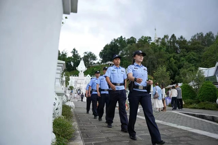 “每次看到警察巡逻,心里特别踏实。”居住在芒市勐焕银塔景区附近的张大爷说。在芒市核心景区,由芒市公安机关1个PTU快反单元、8支徒步巡逻组、9支骑警队构成的防控力量,实行24小时不间断巡防,成为流动的“安全灯塔”。