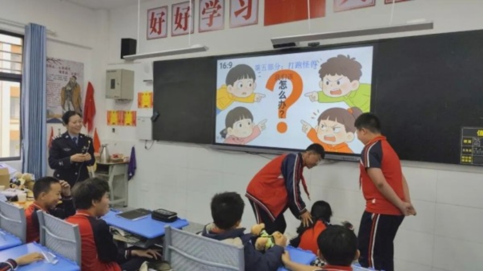 同时,民警结合2026年1月1日起实施的新修订《中华人民共和国治安管理处罚法》,解读“欺凌=违法”的法律准则,明确不同年龄段未成年人实施欺凌需承担的法律责任,打破“年龄是护身符”的误区,并通过“法律红绿灯”互动问答,让同学们牢记法律红线。