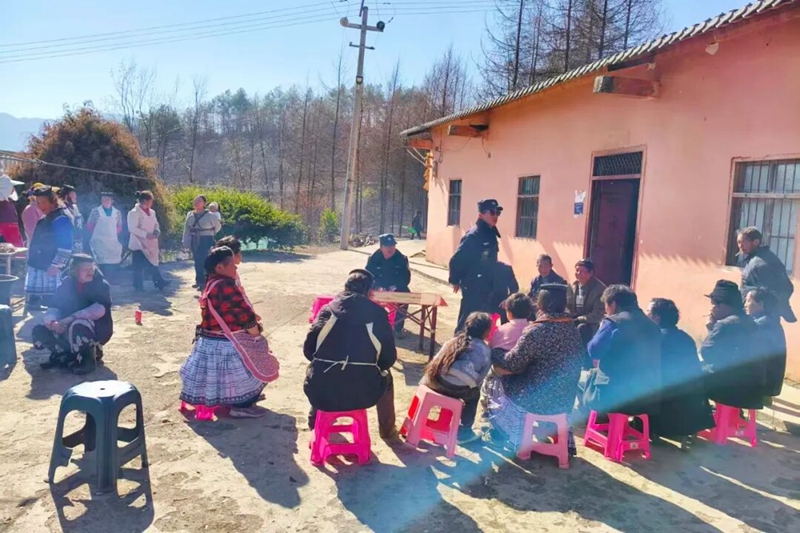 针对辖区彝族、苗族等民族群众分布特点,创新推行汉、彝、苗“三语”宣传模式。组织懂民族语言的民警、辅警深入民族村寨、聚居区,以拉家常、话家常的方式,向乡亲们普及防火、防盗、防电信网络诈骗、禁毒、交通安全等与日常生活息息相关的安全知识。宣传过程中,民警、辅警用通俗易懂的语言将防范知识拆解细化,不绕弯子、不唱高调,确保安全知识入脑入心,切实增强各族群众的安全防范意识和法治观念,让每一户家庭都能守住安全底线、做到尊法学法守法用法。