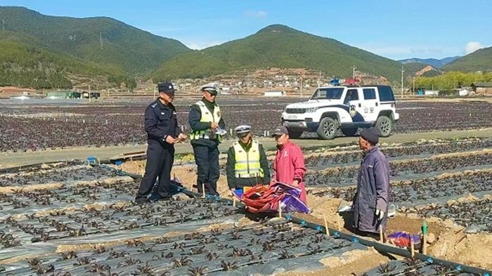 在这片充满希望的田野上,除了辛勤劳作的菜农,还有一群身穿藏蓝的“护苗人”穿梭其间——丽江市公安局古城分局金安派出所的民辅警们。他们深耕“田间警务”,用脚步丈量民情,用真情守护这片“绿色银行”,为春耕生产和乡村振兴保驾护航。