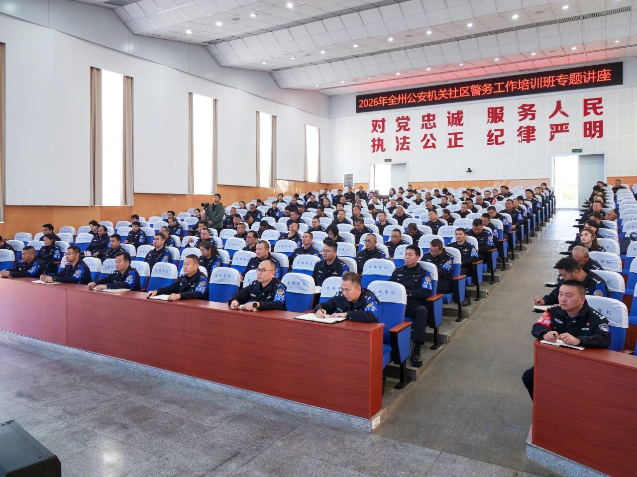 本次培训为期5天,围绕社区警务核心业务设置理论授课、经验交流、现场教学等环节,旨在提升全州社区民警履职能力和群众工作水平。来自10个县(市)公安局分管社区警务工作的副局长、治安大队相关负责同志、城区派出所社区民警及州公安局各部门年轻民警共140人参加培训。