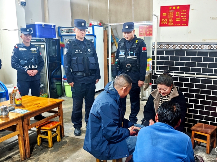 夜幕降临,怒江边陲小镇茨开,警灯闪烁,步伐坚定的身影穿梭于商铺、出租屋、旅店与娱乐场所之间。连日来,怒江州贡山县茨开边境派出所全面启动夜间治安清查行动,以“时时放心不下”的责任感,为群众织密夜间安全防护网。
