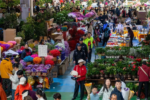 2026年春节花卉嘉年华活动期间,斗南花市日均人流量达12万人次。斗南派出所周密部署,联合街道、文旅等部门做好人流疏导与安全防控,“云花义警”、商户等“一呼百应”力量协同配合,全程保障活动安全有序。