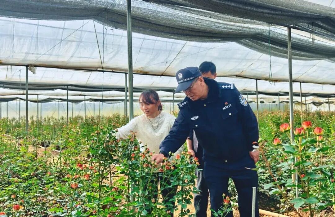 在这片花海背后,易门县公安局六街派出所民警化身“护花使者”,穿梭在大棚与田间。用“警务+服务”为鲜花产业高质量发展注入平安动能。