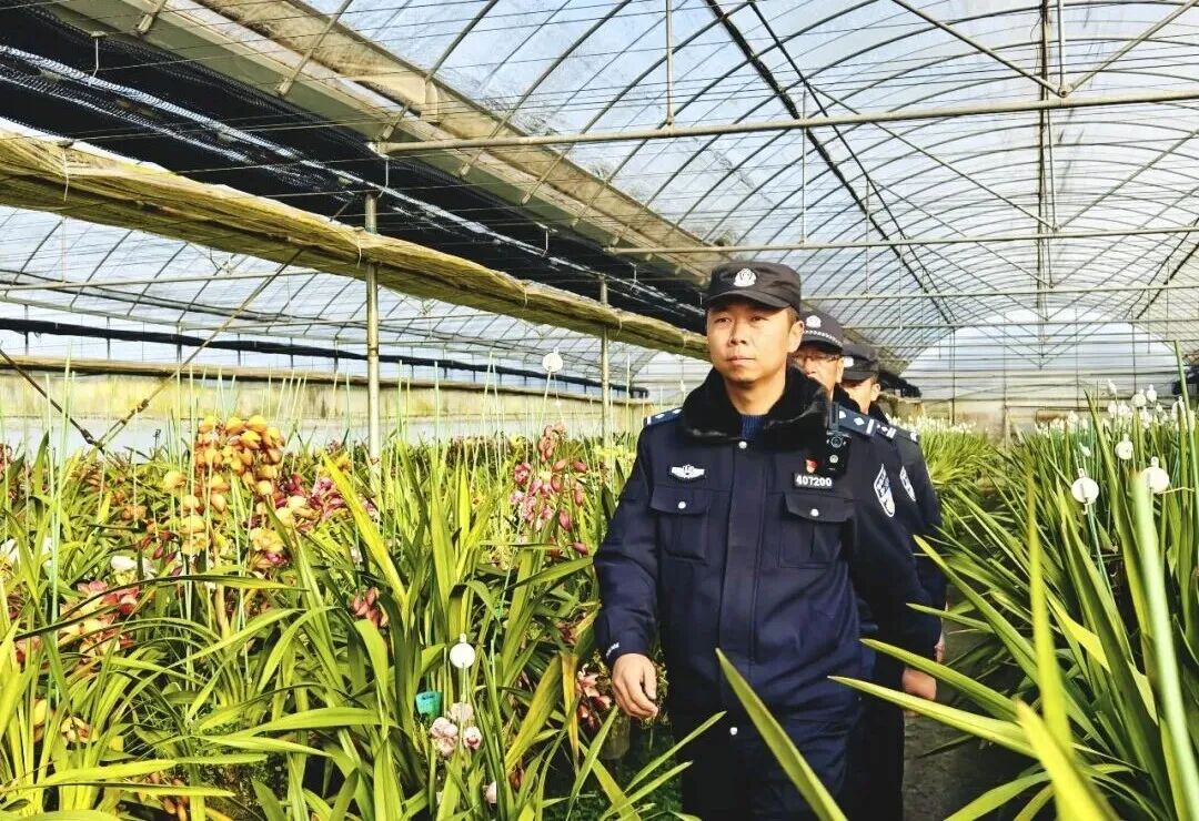 派出所常态化对198户花卉基地开展“地毯式”安全检查,重点排查电路老化、安防设施配备等问题。针对基地雇用人员多、人员流动性大的特点,民辅警逐一核查人员身份信息,从源头防范治安风险,为花农生产筑牢安全屏障。