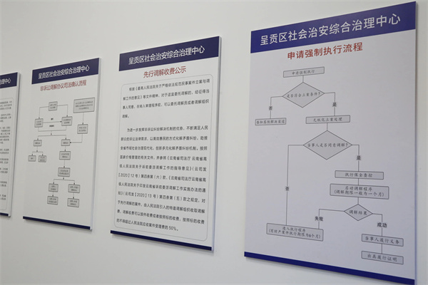 整合职能促高效,推动“立调审执”一体化运行。整合执行立案、接待咨询、执前督促、和解调解、快速执行等职能,推动执行事务办理从“多跑腿”向“一站办”转变。群众可在呈贡区综治中心一次性办理执行相关业务,实现司法服务与基层治理资源的深度融合,切实将司法便民落到实处。