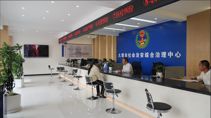 目前,大理市综治中心设置有9个窗口,以一个中心调动各方面资源,有13个部门的专业力量常驻、16个部门轮驻、10个部门随驻,汇聚近百名法律、调解、心理咨询专家,协同发力、精准调度。